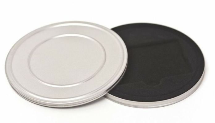 Runde Metalldose mit schwarzer Einlage im Format 123x10mm