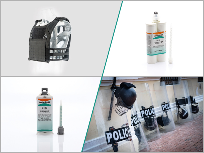 Bei Polizei, Behörden und Sicherheitsdiensten sind „kugelsichere Schutzwesten“ heute Standard. Ihr extrem widerstandsfähiges Gewebe besteht aus mehreren Schichten hochfester und hitzebeständiger Kunstfasern, die mit Panzerplatten aus Metall, Keramik oder Polyethylen zum Schutz vor Projektilen abgesichert werden. Damit Schutzwesten selbst den härtesten Einsatzbedingungen wie Feuchtigkeit, Flammen, Chemikalien und Gewalteinwirkungen standhalten, ist eine stabile Verarbeitung grundlegende Voraussetzung. Dank moderner Klebetechnik lassen sich die verschiedenen Materialschichten absolut dicht und reißfest miteinander verbinden. Um diesen hohen Anforderungen gerecht zu werden, hat die RUDERER KLEBETECHNIK GmbH ihr komplettes Technologie-Know-how gebündelt und in die Entwicklung von Spezialklebstoffen gesteckt. Unter der hauseigenen Marke „technicoll®“ finden Hersteller von persönlicher Schutzausrüstung für ein sicheres Arbeiten (PSA) hochwertige Klebstoffe, die in Punkto Haltbarkeit und Funktionsfähigkeit sowie Sicherheit und Arbeitsschutz wahre Spitzenreiter sind. Wer Schutzwesten, Schutzhelme, Schutzschilder oder auch Sicherheitsschuhe mit diesen leistungsfähigen Klebstoffen herstellt, wird den hohen Anforderungen rund um persönlicher Schutzausrüstung und Arbeitsschutz-Equipment zuverlässig gerecht.