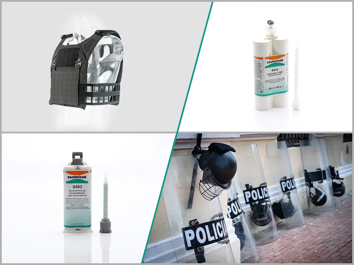 Aus den unterschiedlichen Materialzusammensetzungen und Schichten einer Schutzweste ergeben sich verschiedene Schutzklassen. Die Standards variieren dabei von Land zu Land. Eines ist jedoch allen gemein: Je mehr Gewebefaser-Schichten übereinanderliegen, desto größer ist die Abschirmung vor Schüssen aus Feuerwaffen, aber auch vor Stößen und Stichen. Um die Materialvielfalt nahtlos miteinander zu verschmelzen, setzen Hersteller von Schutzwesten, Schutzhelmen und Schutzschilden auf die Fügetechnologie „Kleben“. Dieses moderne Verfahren bietet ihnen ein enormes Potenzial zur Gewichtsreduzierung, langfristigen Versiegelung und Absorption thermischer und dynamischer Belastungen.